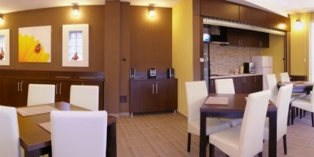 Turiştii au la dispoziţie un restaurant amenajat pentru mic dejun.